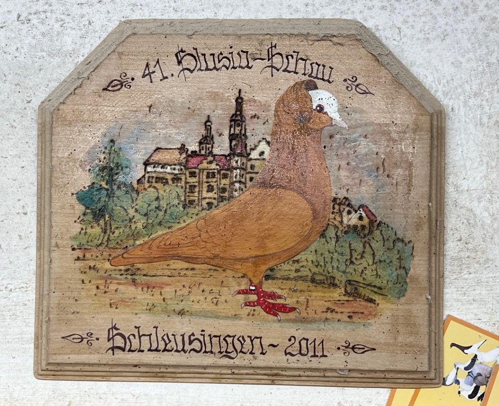 Diesen schönen, gemalten Ehrenpreis der Ausstellung in Schleusingen/Thüringen aus dem Jahr 2011 sahen wir ebenfalls bei Matthias Hauck. Er zeigt eine gelbe Süddeutsche Blasse. Ein schönes Zeitdokument.