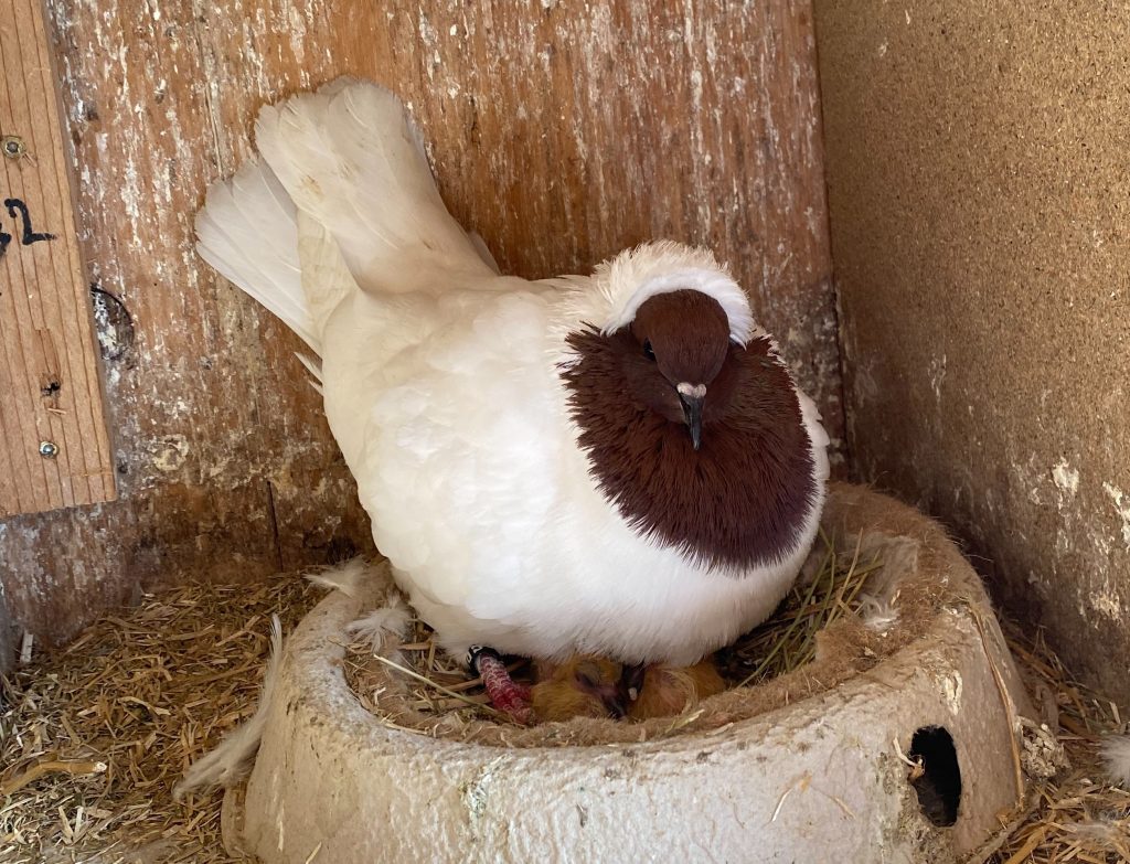 Johannes Hübner hat uns diese zwei Bilder von braunen und blauen Süddeutschen Latztauben geschickt. Während bei der Braunen schon die Jungen geschlüpft sind, sitzt die Blaue noch auf Eiern. Bei solcher Qualität darf man auf die Jungtiere gespannt sein.